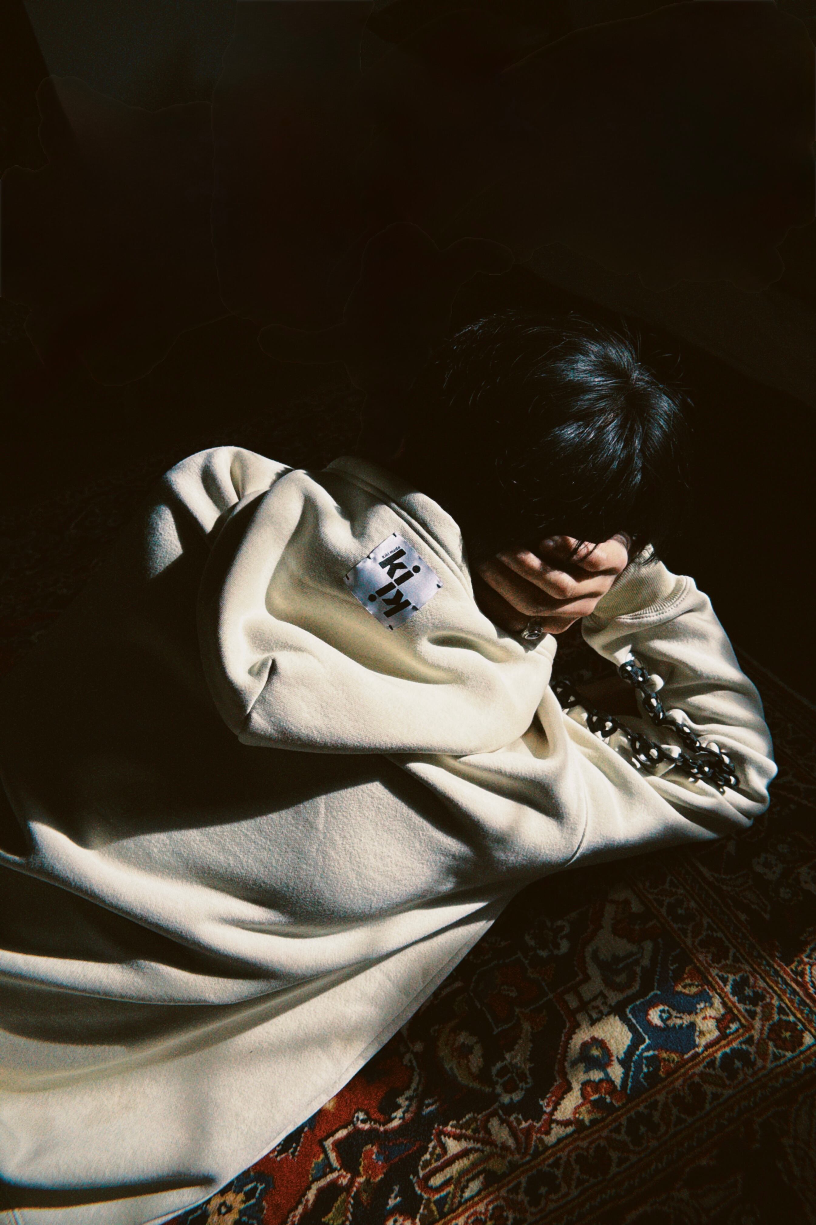 フードには大きめのkikimadeのタグが